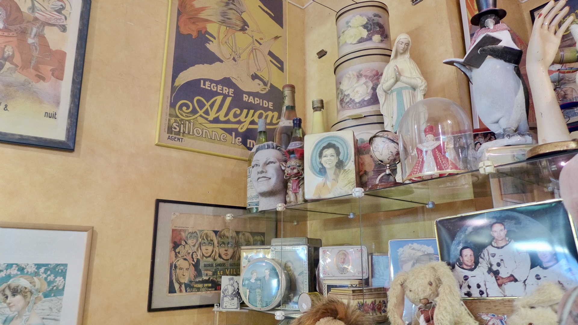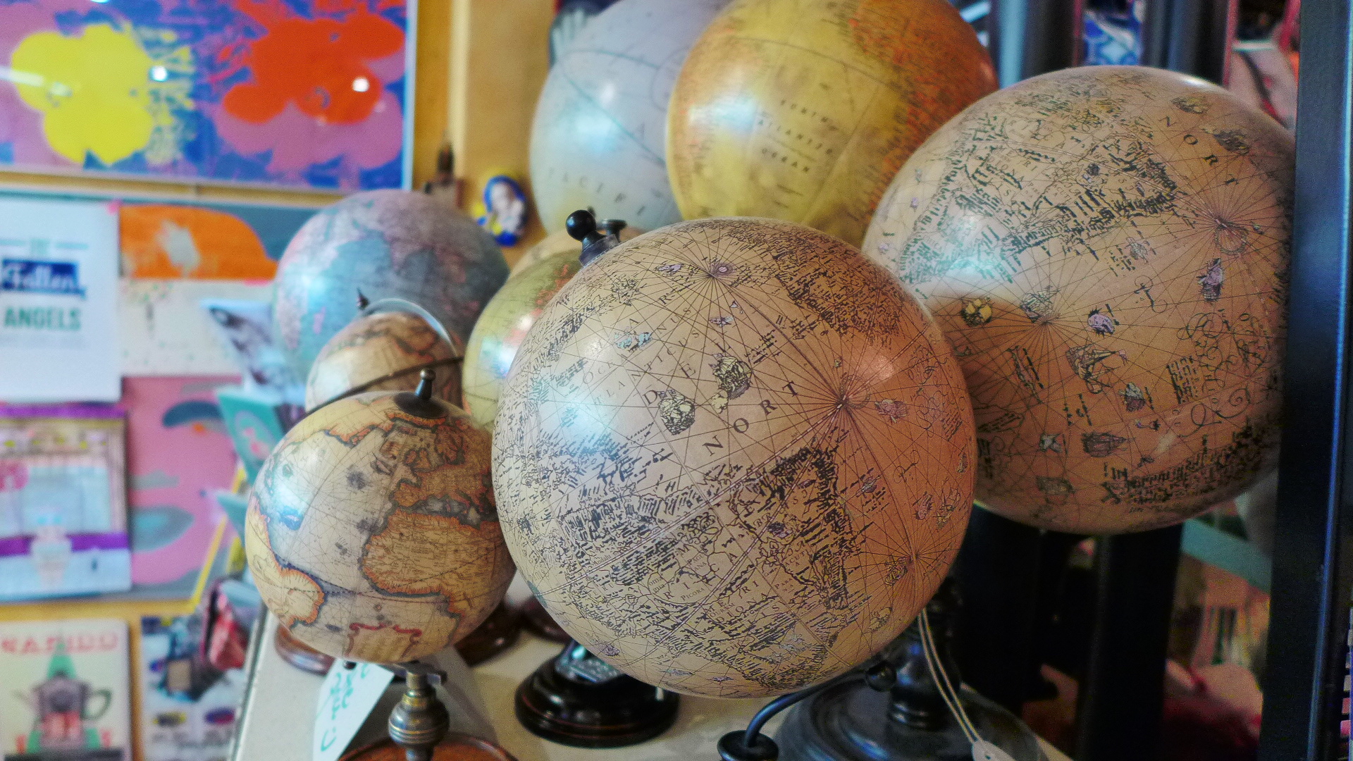 Van retro kaartjes, wereldbollen en -kaarten, posters en oude koffie- en koekjesdozen. Je hebt ogen tekort. Je zou er tientallen cadeau vinden en nog de indruk hebben dat je niet overal gekeken hebt. Dat laatste is vooral waar omdat je zeer moeilijk overal aan kan. De winkeldame heeft ook gewoon een grijpstok om in alle stapels spullen iets te nemen.