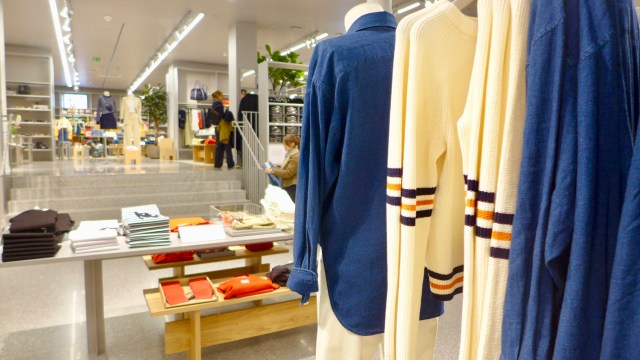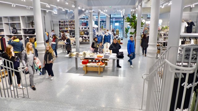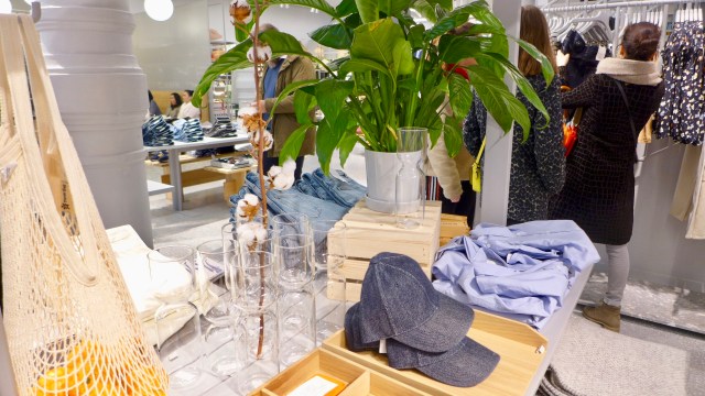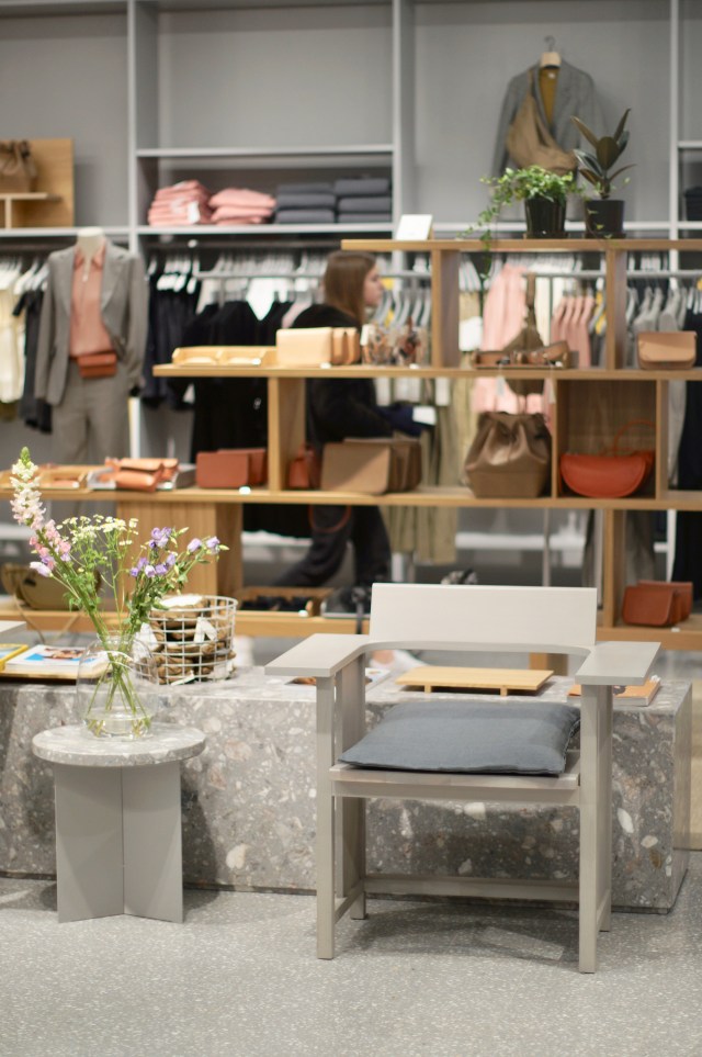 De winkel slaagt erin hun producten heel netjes te etaleren. Veel ruimte om rond te kijken. De strakke vormen van de wandrekken en hangers maken het echt wel Scandi.