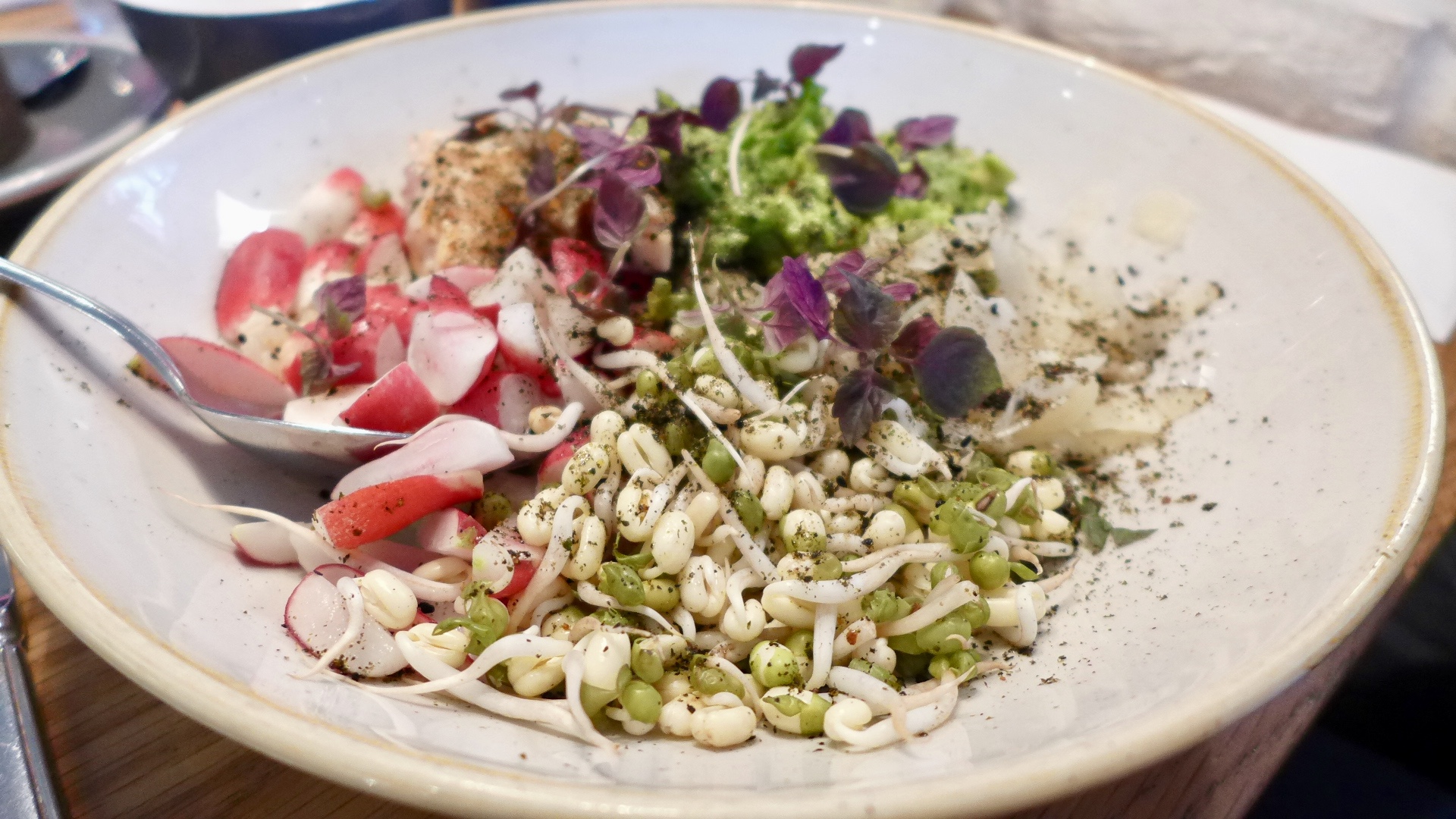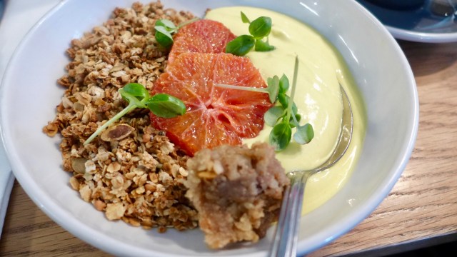 Je kan er echt alles eten voor ontbijt, brunch & lunch. Wij hadden een hele dag voor de boeg, met high tea als volgende (eet-)stop om 16u, dus we hadden van de gelegenheid gebruik gemaakt eens écht te brunchen. Starten met granola en heerlijke yoghurt, daarna elk nog een goede toast met scrambled eggs… Mmmh