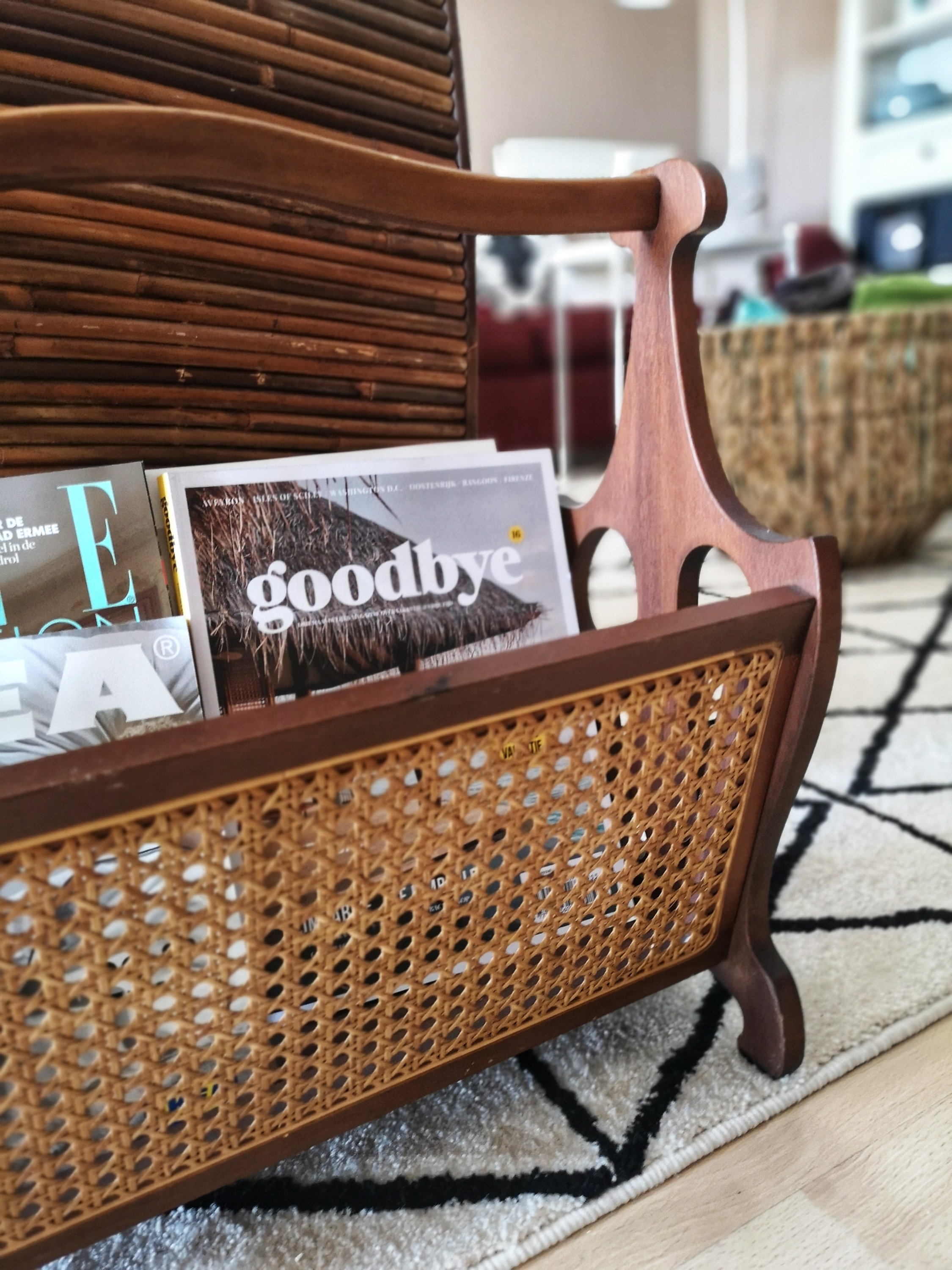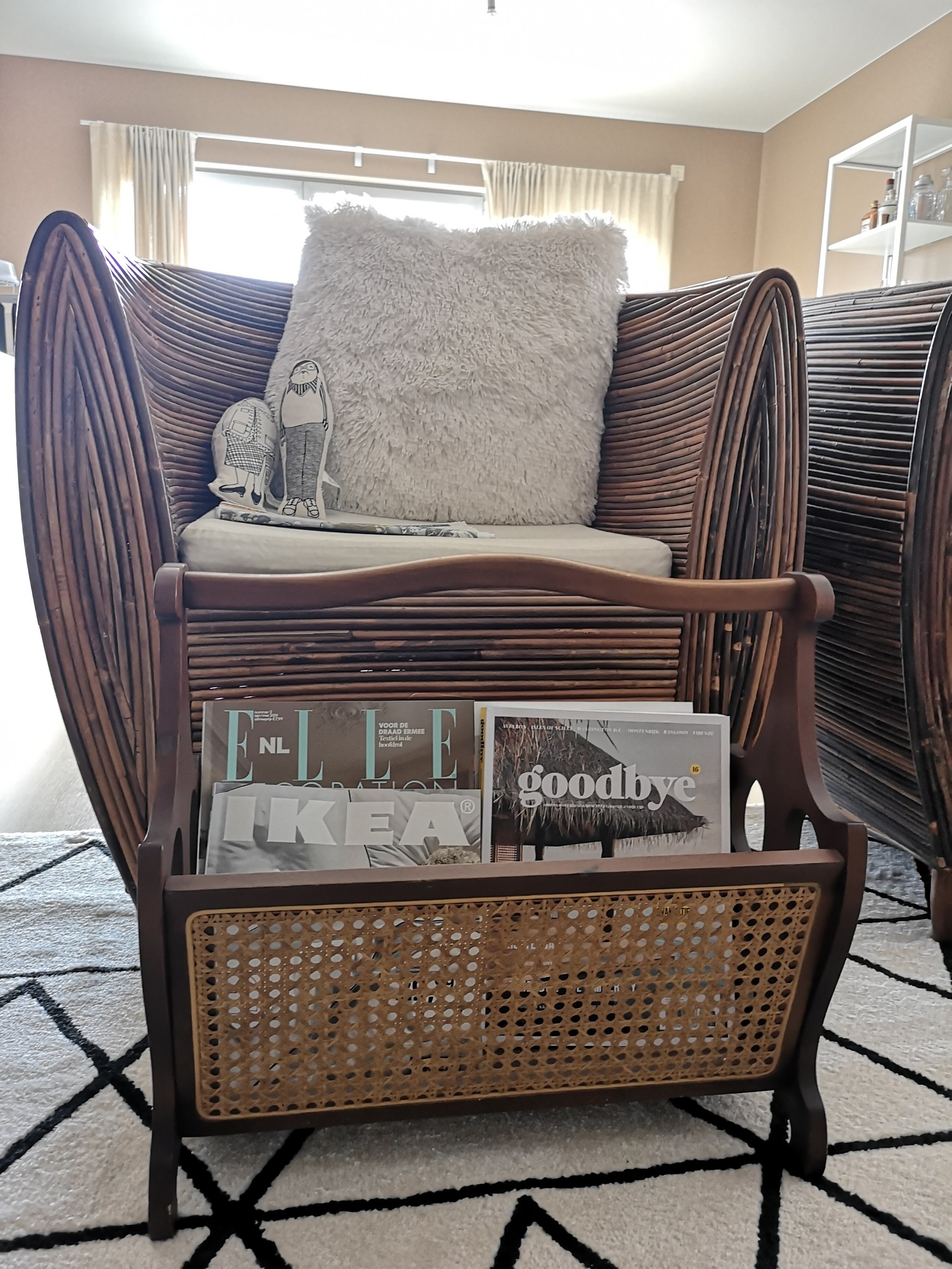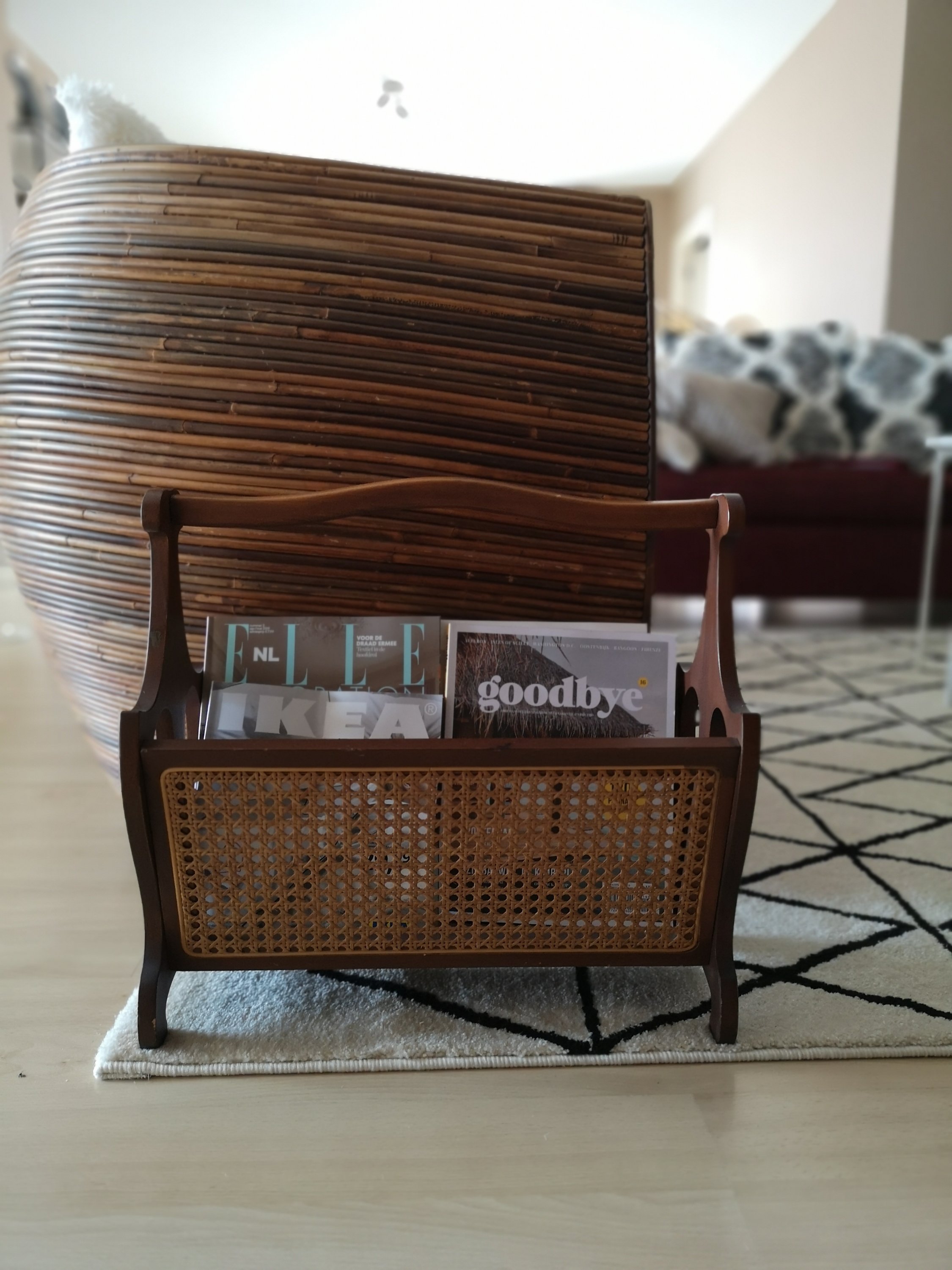 Raad het of niet, dit krantenbakje heb ik er voor 2 euro gescoord. Webbing is nu enorm trendy, dus wat ben ik blij dat ik toch ook een origineel design stuk heb staan. Anne-Catherine CLO CLO brengt in haar nieuw boek voor september een stuk uit over hoe je met deze fabric basis stuks kan pimpen, ik ben alvast benieuwd…..