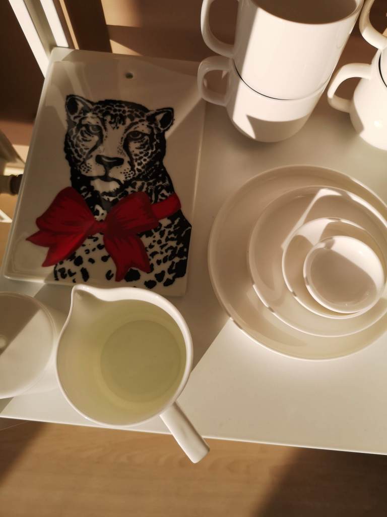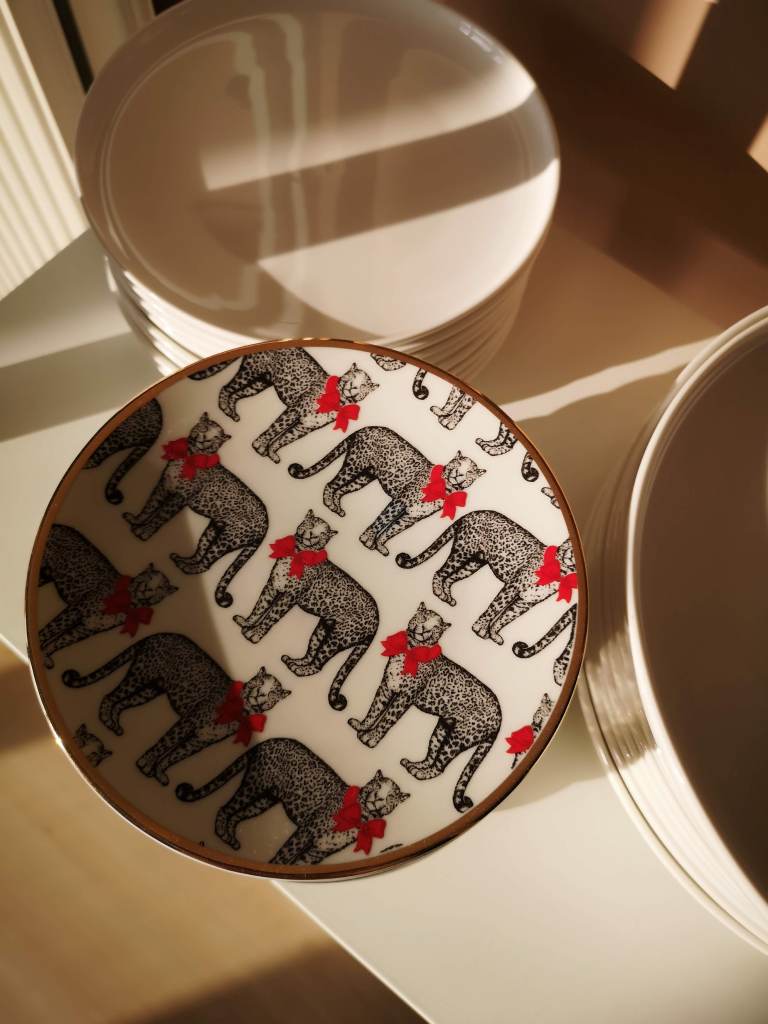Wit is een zeer veilige keuze voor een keuken, of niet (*denkt aan rode tomatensaus*)? Een Scandinavische look gaat gepaard met minimalistische witte lijnen. Mijn basisservies is het witte “Moon” van Casa. De ronde lijnen maakt dat ik het makkelijk kan combineren met leuke stuks uit andere collecties, zoals Piet Boon van Serax. Hier heb je waarschijnlijk een andere blikvanger gespot. Mijn Luipaard-servies met rode en gouden tinten is van H&M Home. Ik heb het 4 jaar geleden gekocht voor Kerstmis maar vind het wel permanent passen in mijn kolomkast. Van een blikvanger gesproken.